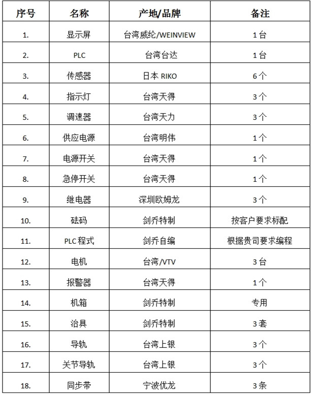 產品型號:JQ-887 品牌:劍 喬 用途:一、本機概述; 本機機械結構:采用臺灣變頻調速電機凸輪結構配合日本THK精密線性滑軌完成線性上下動作,電器控制部分:采用臺灣威倫觸摸屏+臺灣臺達控制器(PLC).可對計算機、手