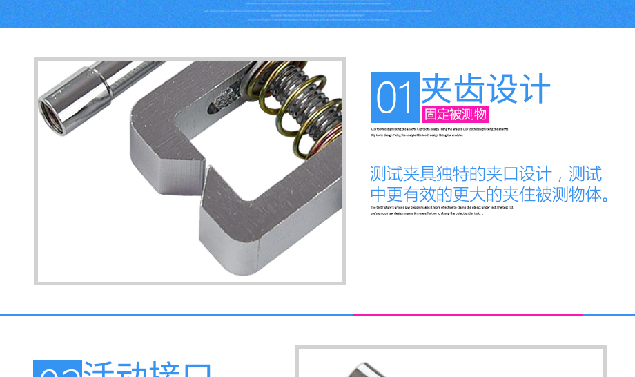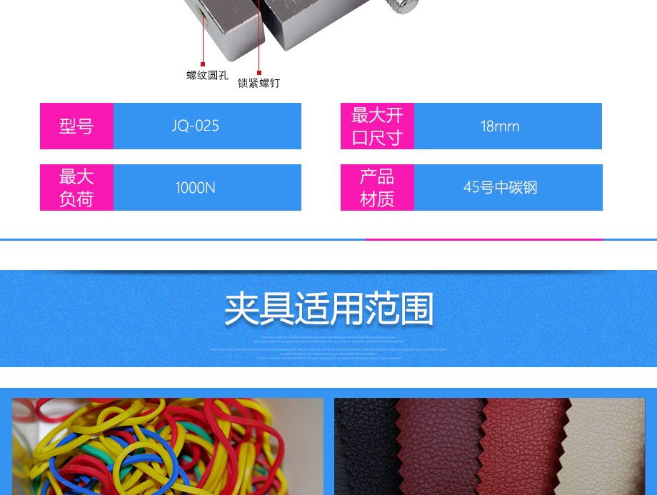 產(chǎn)品型號:JQ-025 品牌:劍 喬 用途:尖口端子夾具適用范圍:橡膠、各種線纜、紙、各種電器元件、塑料薄膜等材料的拉力,破壞力測試。
